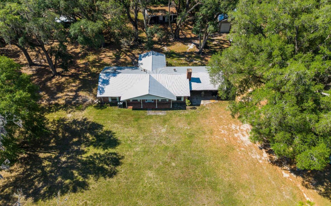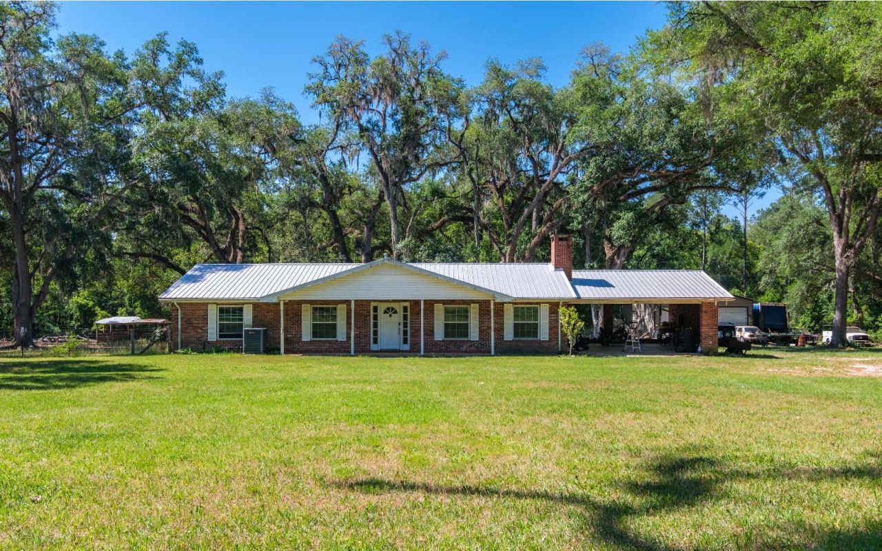 15.6 Acres, This 3 Bed 2 Bath home with 2 car carport. Metal building with concrete slab, 220 electric, 2 roll up work bays. Fenced area for livestock and horses. Additional Horse stalls with concrete slab. Grand Daddy Oaks and walking trails throughout the back 10 acres with additional access to the property from CR-129. Cash and Conventional only!